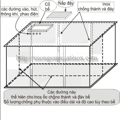 • Hệ thống gia cố: Bể tốt phải có thanh giằng (thường làm từ ống inox công nghiệp 304) bên trong để tăng cường khả năng chịu lực ép từ mọi phía của đất, đặc biệt quan trọng với bể dung tích lớn.