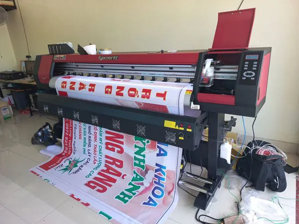 - Công nghệ in phun mực dầu (Solvent ink): Mực dầu có độ bám dính tốt, chống nước, chống tia UV, thích hợp cho các ứng dụng ngoài trời (outdoor) như banner, biển quảng cáo.