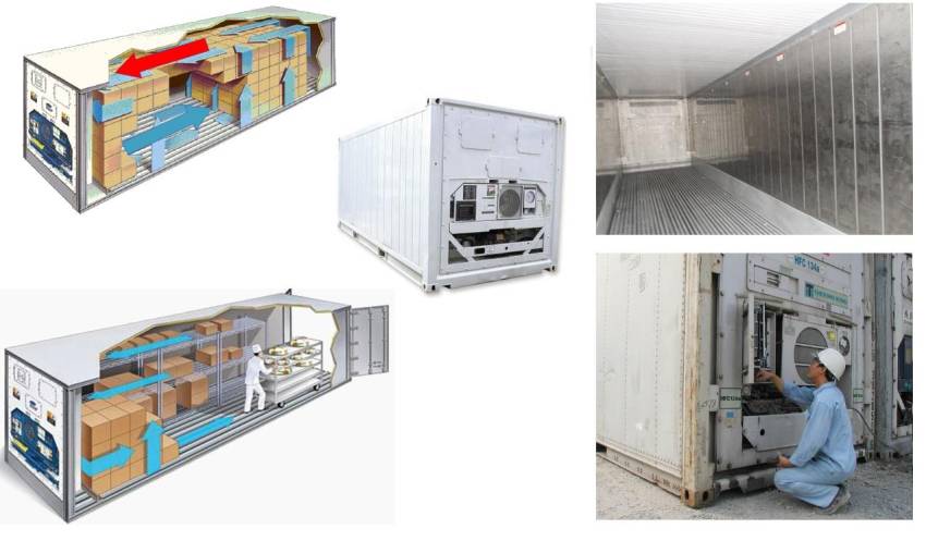 – Container lạnh hoạt động chung với máy lạnh. Để máy lạnh hoạt động, ta nối máy lạnh với nguồn điện 3pha ở kho bãi của hãng tàu, hay ở cảng. Khi vận chuyển container lạnh trên xe container, máy lạnh có thể hoạt động nhờ máy phát điện chạy bằng dầu diesel.